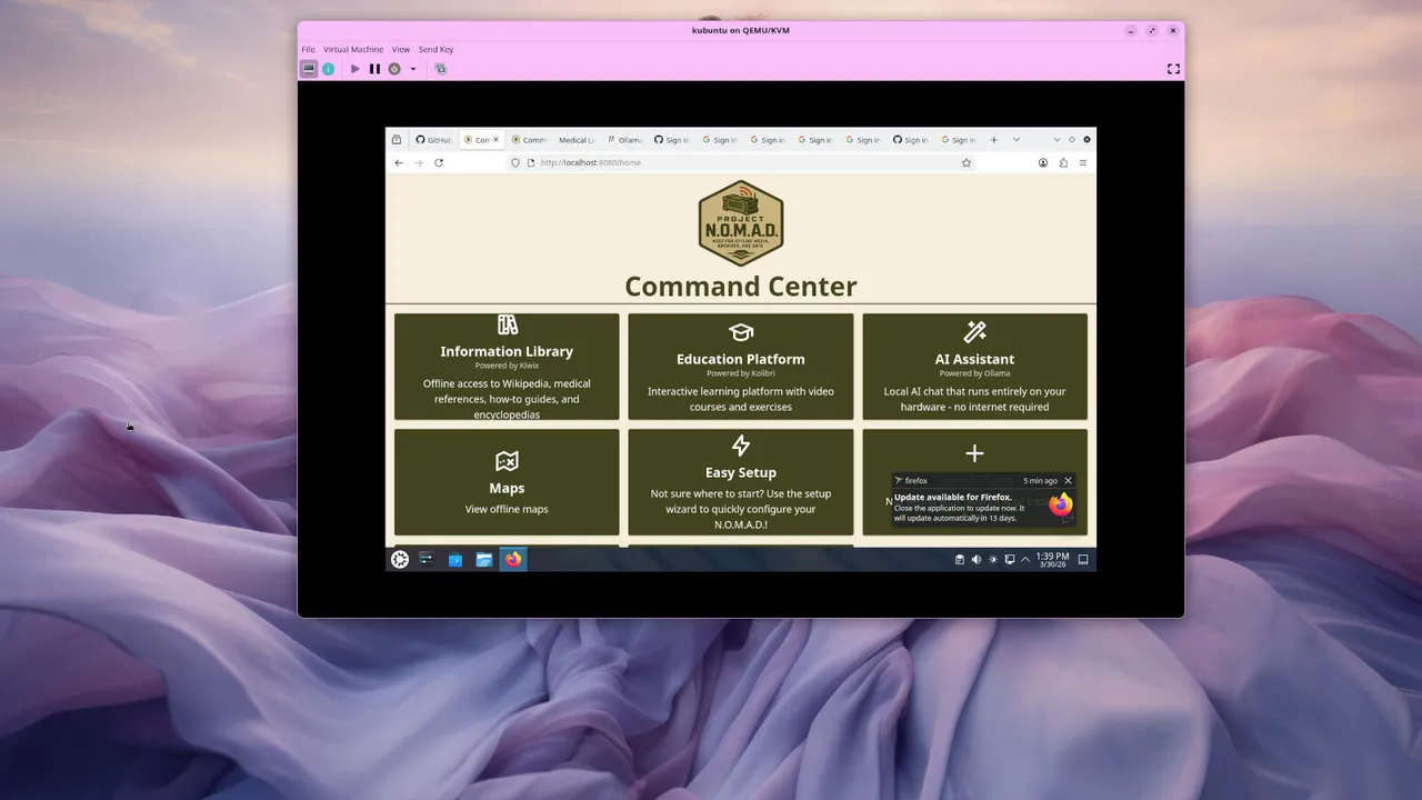 Decidi tentar outra instalação do NOMAD, desta vez no Kubuntu. Achei que talvez a instalação anterior do Ollama estivesse causando problemas. Boas notícias: isso funcionou. Agora eu poderia executar a configuração fácil para todos os recursos necessários.