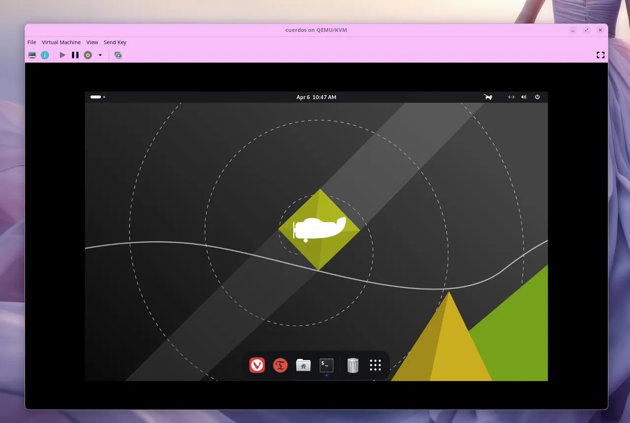 Instalei o CuerdOS como uma máquina digital em meu System76 Thelio com CPU AMD Ryzen 9 e 64 GB de RAM. Dei à VM apenas 4 GB de RAM e 2 CPUs, e o CuerdOS teve um desempenho tão bom (se não melhor) que o sistema operacional host.