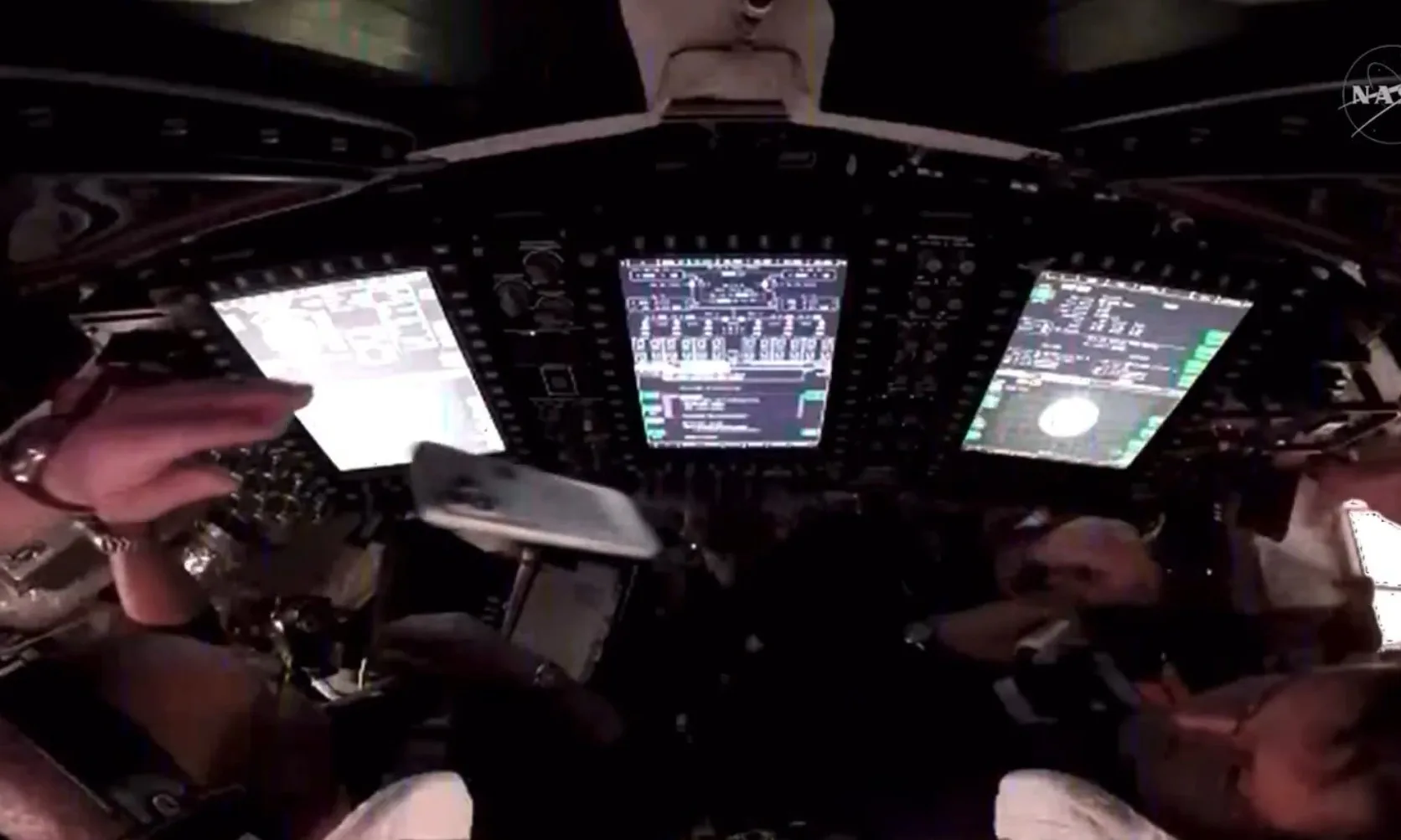Um iPhone flutuando na cabine simplesmente atravessa todos os patches da missão e os gigantescos painéis de controle da NASA. E, honestamente, isso apenas aumenta seu charme.