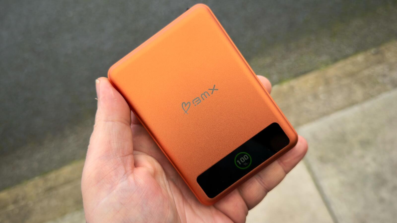O BMX SolidSafe 10K é um banco de energia portátil de 10.000mAh/38Wh que mede 4,0 x 2,7 x 0,6 polegadas e pesa 7,4 onças. Essas medidas são definitivamente pesadas para um banco de potência magnético (é alguns gramas mais pesado do que um banco de potência padrão). Isso pode ser um problema se você espera que um acessório desse tamanho facilite a viagem e o armazenamento, pois pode parecer mais volumoso do que a maioria de seu tipo.